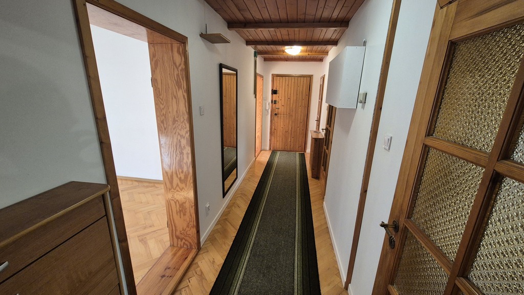 Łazienka z oknem w glazurze i terakocie z kabiną prysznicową, wanną i WC. Kuchnia również z oknem wyposażona i umeblowana jak na zdjęciach, w kuchni miejsce na pralkę. We wszystkich pokojach na podłodze drewniany parkiet w dobrym stanie. Okna wszystkie PCV. Czynsz do wspólnoty ok 341,21zł z funduszem remontowym (bez zaliczek na wodę i śmieci).