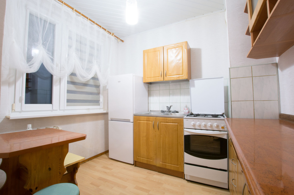 - oddzielnej kuchni z oknem. Wyposażona w meble kuchenne, stolik, kuchenkę gazową z piekarnikiem el i lodówkę z zamrażarką.