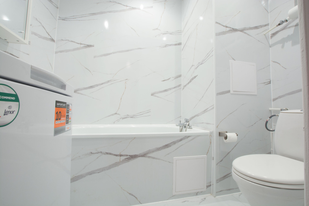 - ładnej łazienki — po remoncie, z wanną, nową pralką, szafką z umywalką oraz wiszącą szafkę z lustrem.