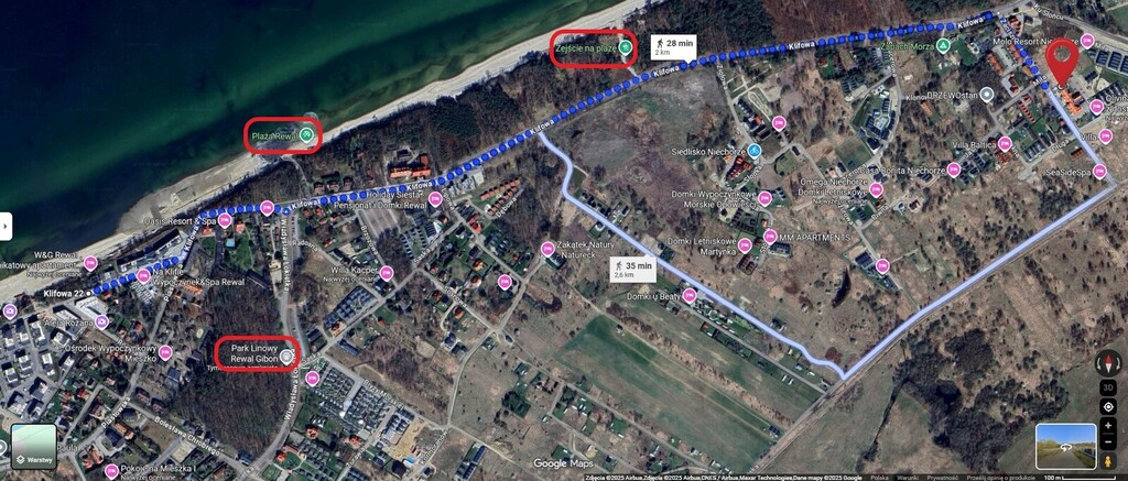 odległa tylko o 1km. Rewal, jedna z najbardziej atrakcyjnych turystycznie miejscowości nadmorskich w okolicy