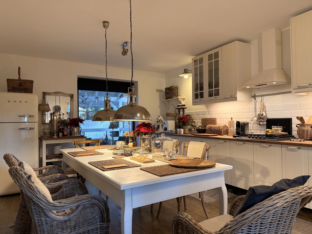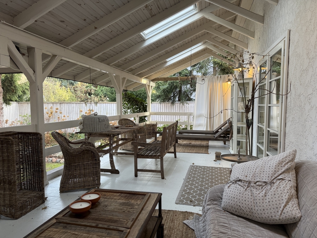Na sprzedaż duży, w pełni wyposażony, klimatyczny dom po remoncie z 4 sypialniami (9 pokoi) i 3 łazienkami, w okolicy Jeziora Szmaragdowego, z zaaranżowanym tarasem, ogrodem i garażem na 2 samochody.