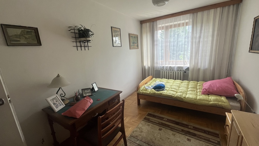 Na poddaszu przestronny pokój z widokiem na ogród oraz dwa pomieszczenia do zagospodarowania np. na pokoje .