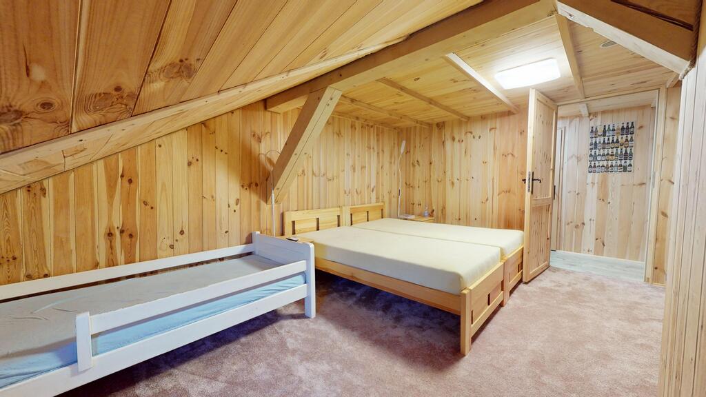 Pozostałą część parteru tworzą dwa pokoje/ sypialnie, spiżarnia, łazienka, osobna toaleta oraz pomieszczenie gospodarcze. Na piętrze znajdują się dwa pokoje gościnne oraz kącik wypoczynkowy