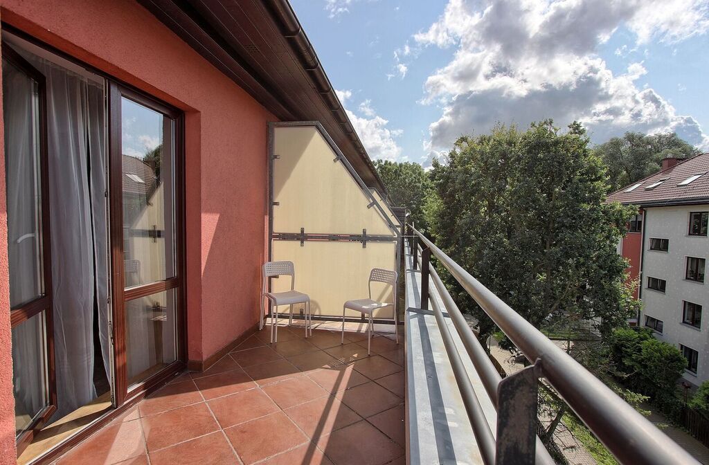 przedpokój, przestronny salon z aneksem kuchennym ( wszystkie niezbędne sprzęty agd i rtv) , sypialnia z wyjściem na duży słoneczny taras