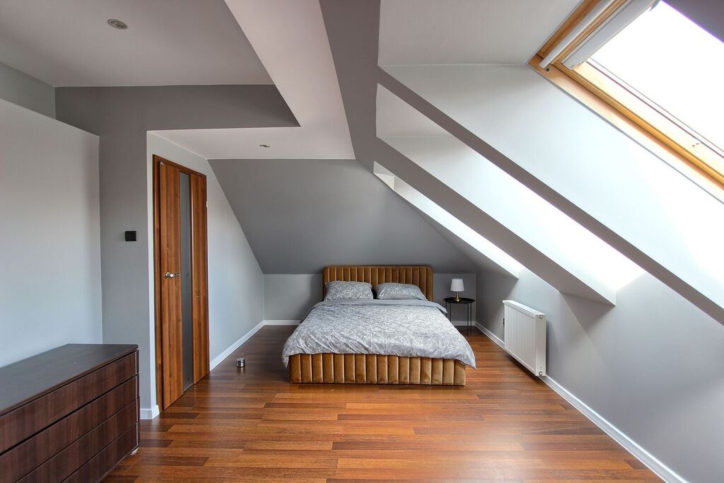 sypialnia z możliwością aranżacji biura lub garderoby, nieuciążliwe skosy spora powierzchnia do zagospodarowania na garderoby i szafy pod zabudowę