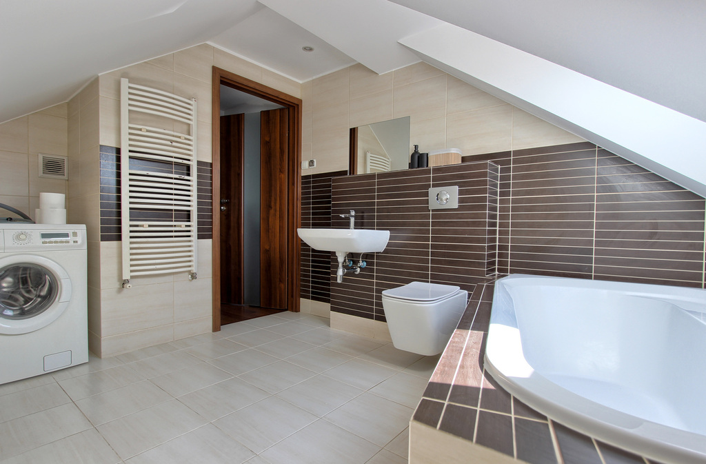 druga łazienka, również z wanną i sporą powierzchnia do stałej zabudowy