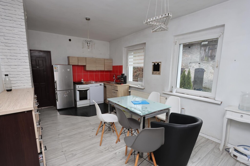 Dom o pow. użytkowej 93,90 m2, składający się z dwóch niezależnych lokali mieszkalnych (na parterze o pow. użytkowej 60,0 m2 oraz poddaszu o pow. użytkowej 33,90 m2). Budynek jest podpiwniczony.