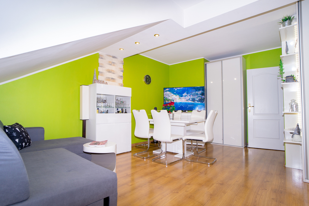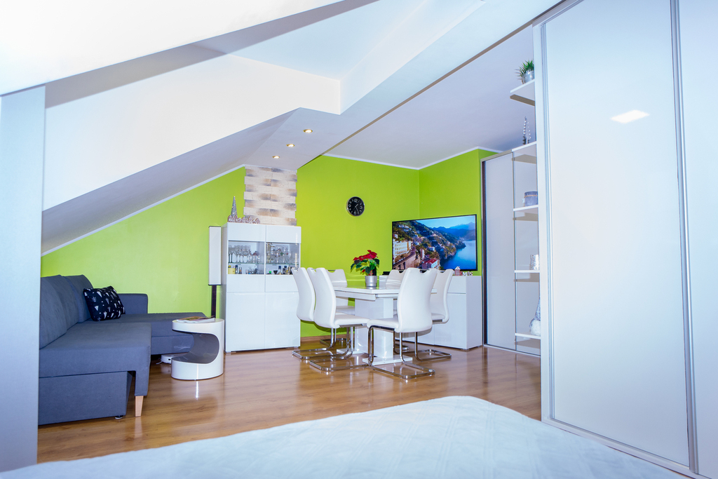 - przestronny, salon z wydzieloną częścią na sypialnie