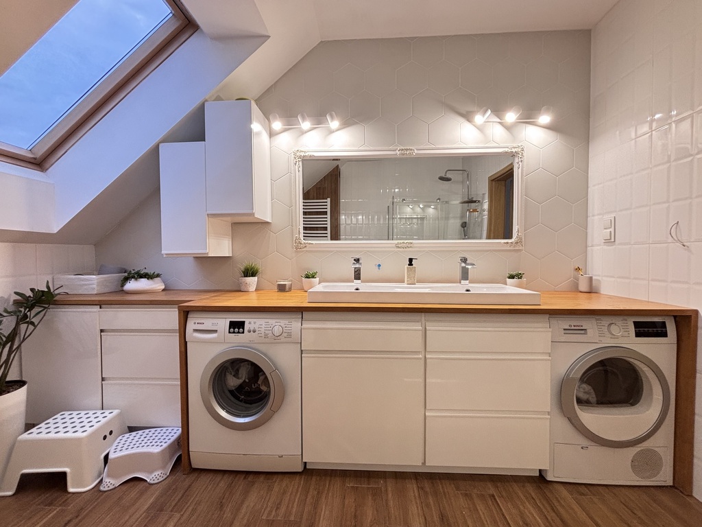 • komfortowa łazienka z wanną, prysznicem oraz dwiema umywalkami.
