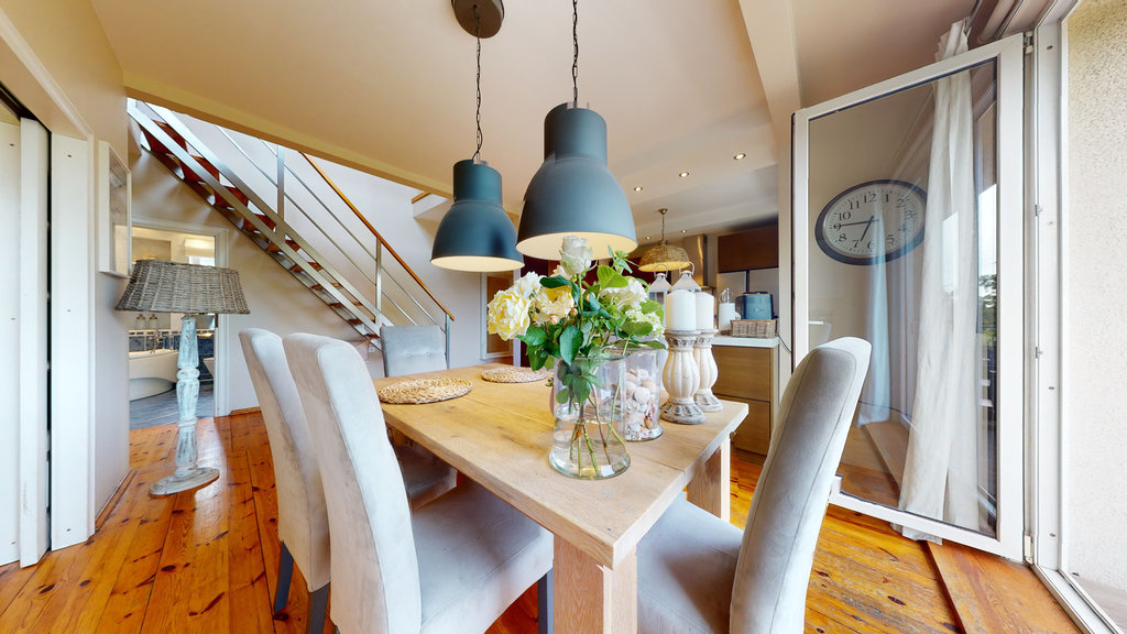 - otwarta kuchnia z jadalnią i wyjściem na balkon