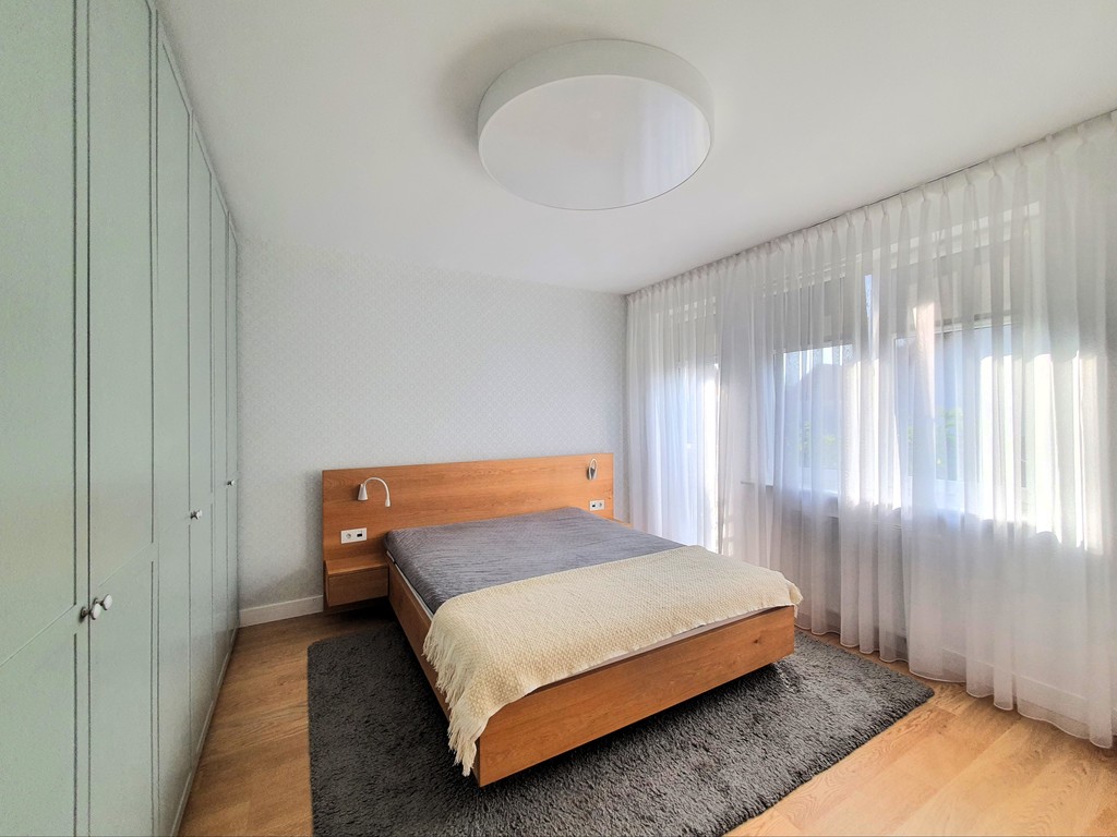 - sypialni z wygodnym podwójnym łóżkiem oraz bardzo przestronną szafą na wymiar z oświetleniem wewnętrznym oraz komodą