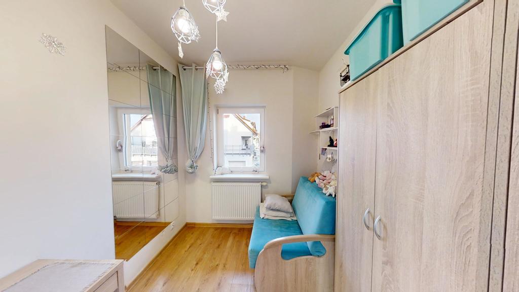 Na podłogach w mieszkaniu panele o wysokiej klasie ścieralności, w kuchni - płytki ceramiczne. Wysokość pomieszczeń - 259 cm. W klatce budynku znajduje się sześć mieszkań. Klatka schodowa szeroka, dwubiegowa ze spocznikiem. W mieszkaniu przyłącze 380 V - możliwość przyłączenia płyty indukcyjnej. Mieszkanie bardzo ciepłe.