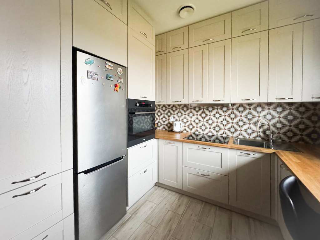 - kuchnia z nową zabudową, o bardzo atrakcyjnym stylu i kolorze z małą, ale jakże niezbędną spiżarnią,