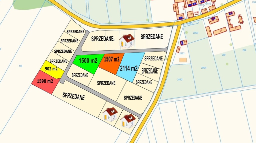 Dla działki przed podziałem właściciel uzyskał decyzje o warunkach zabudowy polegającą na budowie 2 domów mieszkalnych jednorodzinnych, wolnostojących.
