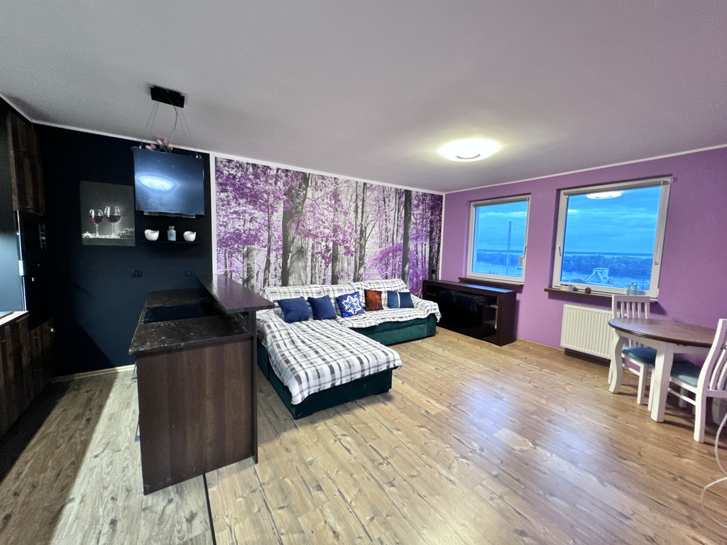 Wszystkie pomieszczenia są widne, ustawne. Pokoje z widokiem na Odrę. Zdecydowana większość wyposażenia widocznego na zdjęciach pozostaje w cenie mieszkania.