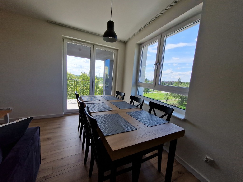 Mieszkanie jest położone w doskonałej lokalizacji. W pobliżu znajduje się centrum handlowe CH Ster oraz Castorama. Bliskość pętli tramwajowej zapewnia szybki dojazd do centrum(10-15 minut).