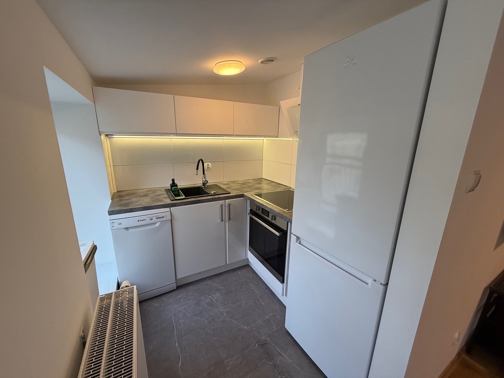 Wyposażenie: kuchnia meble kuchenne sprzęty AGD: lodówka, zmywarka, piekarnik, płyta grzewcza elektryczna.
