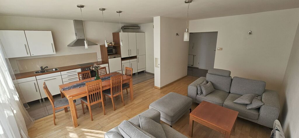 Przedmiotem oferty jest słoneczne, 3 pokojowe mieszkanie dwupoziomowe, położone w budynku z 2002 r. na ul. Lutnianej. Doskonała lokalizacja - blisko przystanek autobusowy, Jasne Błonia, Park Kasprowicza, szkoły, przedszkole, sklepy, urząd i banki. Wszystko w odległości do 500m od mieszkania. Wejście do budynku przez recepcję; duża winda. Budynek całodobowo dozorowany przez portiera. Na I poziomie znajduje się salon (19m2) z aneksem kuchennym (12m2) i wyjściem na duży balkon od strony południowej. W salonie dwie sofy, stół z krzesłami; w kuchni pełna zabudowa mebli wraz ze sprzętem agd (lodówka, zmywarka, płyta ceramiczna, piekarnik i mikrofalówka). Na tym poziomie oddzielne wc (2m3) z zabudową szafek. Pod schodami na II poziom zagospodarowane miejsce z szafkami. Na podłogach deska barlinecka, w kuchni i łazienkach gres szkliwiony. Na II poziom prowadzą wygodne schody drewniane. Na tym poziomie 2 sypialnie ze skosami (10 i 11 m2), w każdej sypialni pojemne garderoby. Łazienka (5m2) z wanną z jaccuzi, bidetem i wc, pralka, ogrzewanie podłogowe. W dużej wnęce, zabudowa z miejscem na przedmioty gospodarcze i pralkę. W oknach połaciowych na II poziomie, zamontowane rolety zewnętrzne zaciemniające i wewnętrzne przeciwsłoneczne. Koszty miesięczne to czynsz ok. 750 zł plus gaz ryczałt ok. 350 zł, plus prąd, tv i internet. Istnieje możliwość zakupu dużego miejsca postojowego tuż obok portierni i windy w garażowcu pod budynkiem za dodatkową opłatą 85 tys. zł. Cena do negocjacji. Mieszkanie do odświeżenia, podłogi do przecyklinowania; mieszkanie bardzo słoneczne, przestronne, idealne dla par lub rodzin z dziećmi. Serdecznie polecam i zapraszam na prezentacje! Przy podpisaniu umowy sprzedaży, opłata do biura nieruchomości.