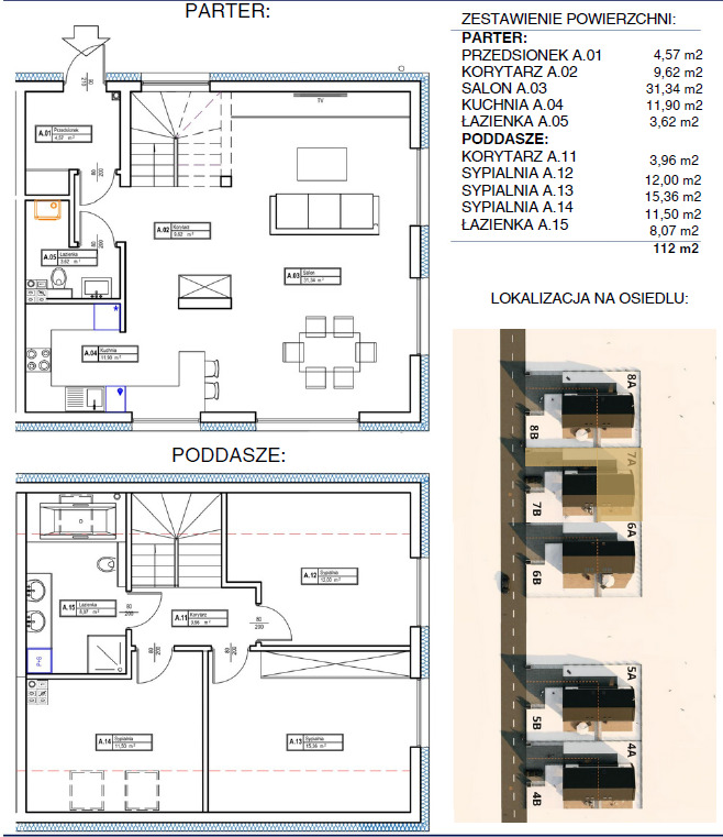 Konstrukcja budynków wykonana jest z wysokiej jakości materiałów. Każdy z domów wyposażony został w nowoczesne systemy, takie jak pompa ciepła oraz ogrzewanie podłogowe w całym domu.